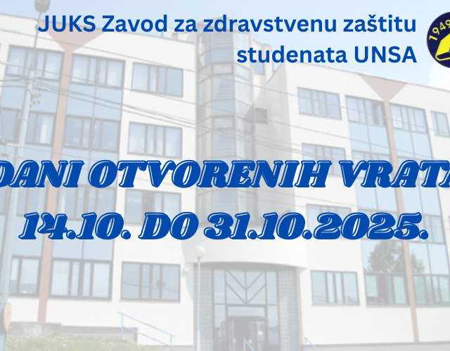 OBAVIJEST – DANI OTVORENIH VRATA U JUKS ZAVODU ZA ZDRAVSTVENU ZAŠTITU STUDENATA UNSA
